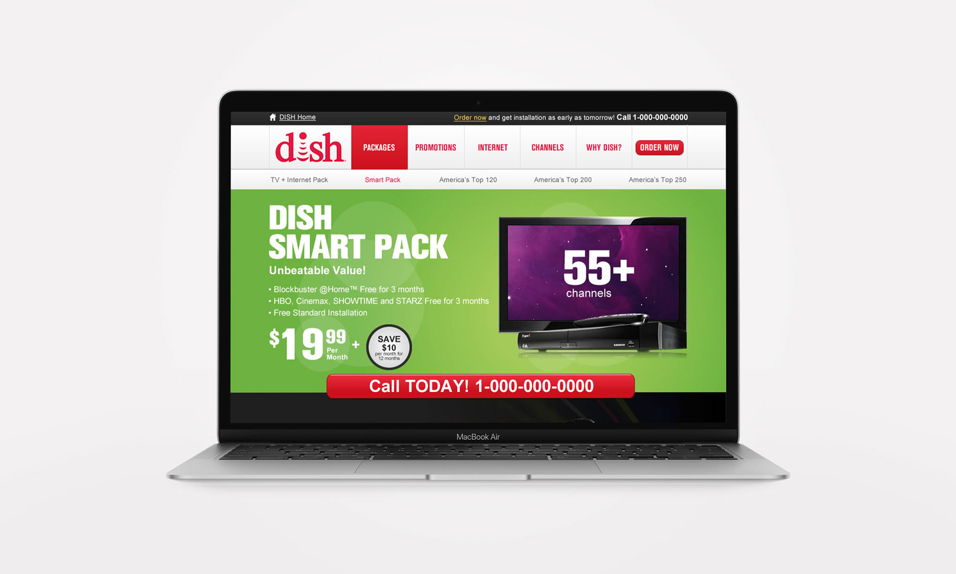 This collection of websites feature various campaigns promoting DISH products and services. For each of these sites, I showcased the brand’s dynamic colors through color blocking. The microsite’s pages were content heavy to equip site visitors with all of the information needed to make informed purchasing decisions. Because of this, I chose a modular approach to make the content easy to digest. The landing page and comparison site followed a similar approach. The primary call to action on these pages was the phone number to offer a guided sales experience.