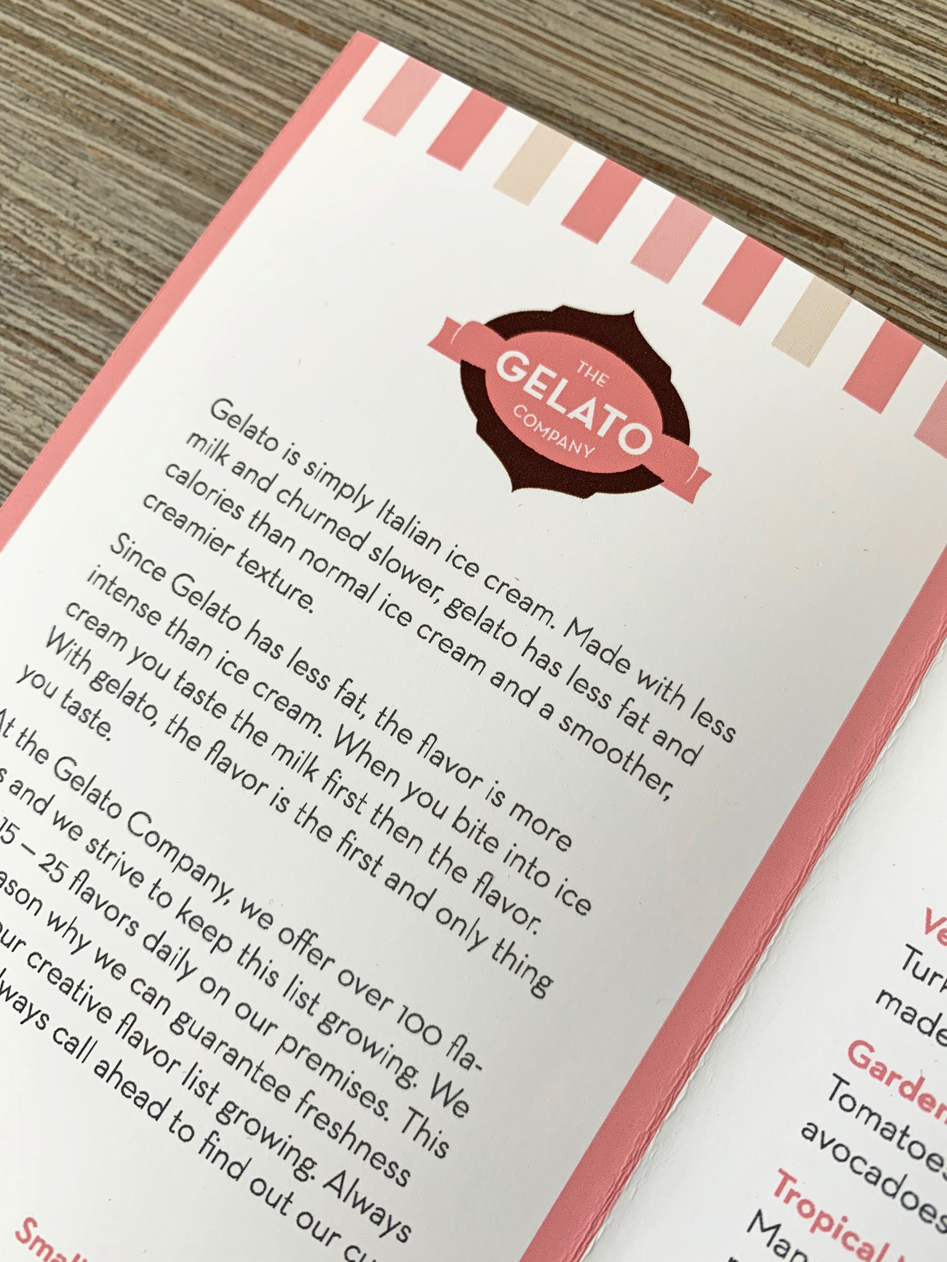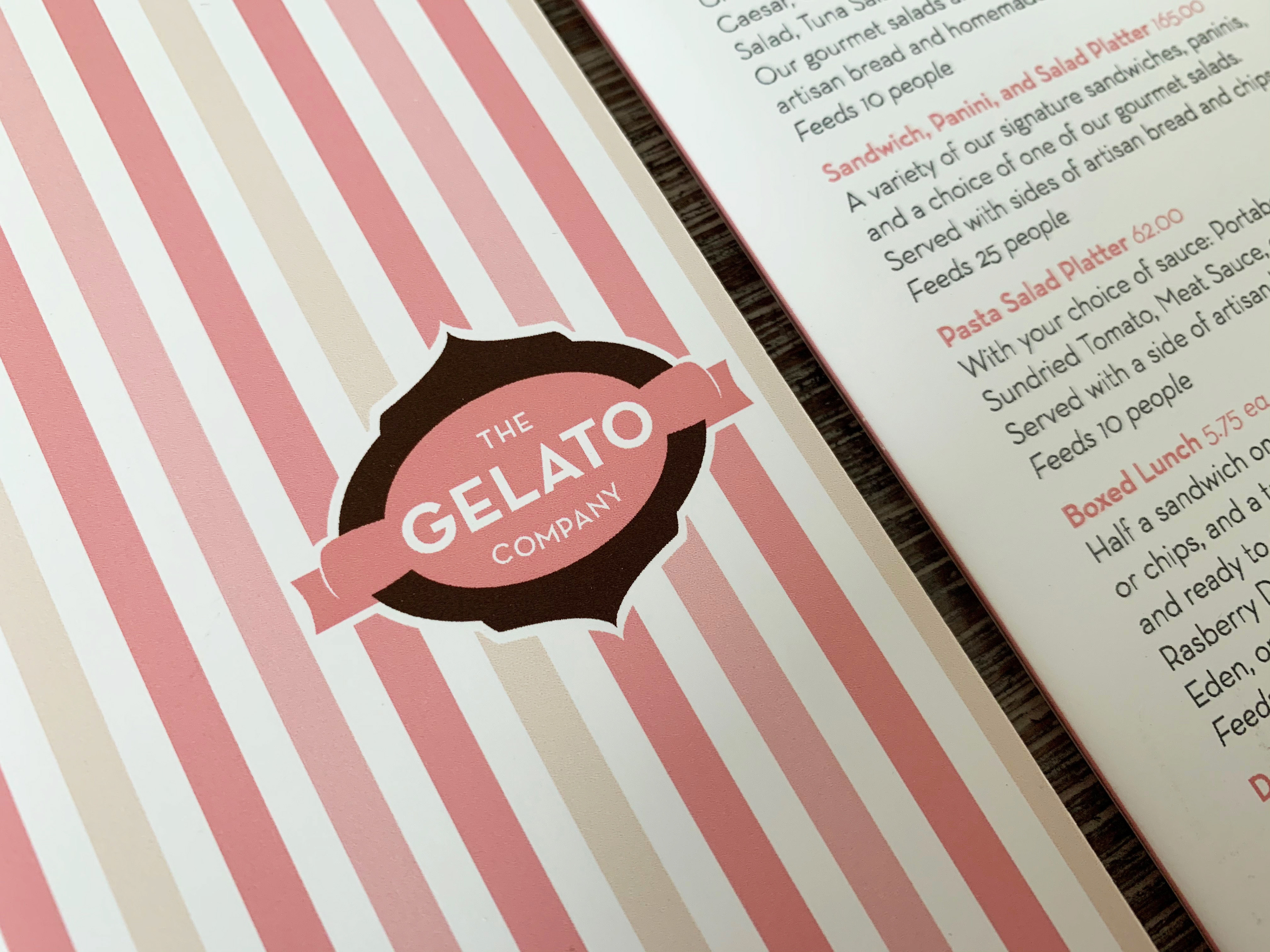 The Gelato Company specializes in selling gourmet, Italian ice cream. For this project, I created a logomark that was fresh and inviting, yet sophisticated to represent the quality of the company’s product. I also designed the company’s menu, which includes an interchangeable leaflet that can easily accommodate the company’s rotating ice cream selections. The menu features the striped motif of retro ice cream parlors, exemplifying the nostalgia of eating a frozen treat.